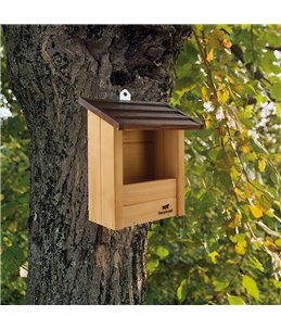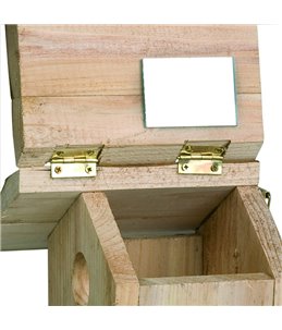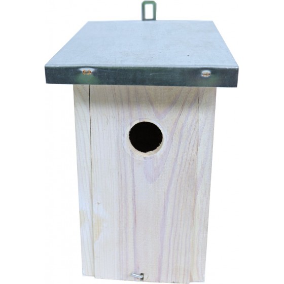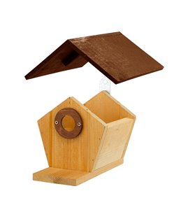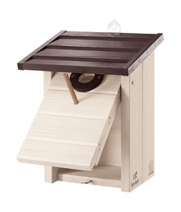In- en uitvliegopening: Ø 30 mm. Mezenkast berken met dakleer dak, puur natuurlijke look. Dit leuke vogelhuisje is gemaakt van...