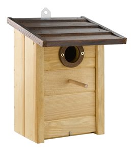 Broedhuis natural rond met schuindak ophangbaar 16 cm is een leuk natuurlijk broedhuisje dat voor een mooie aankleding van uw...
