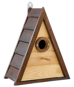 Broedhuis natural vierkant met schuindak ophangbaar 16 cm is een leuk natuurlijk broedhuisje dat voor een mooie aankleding van...