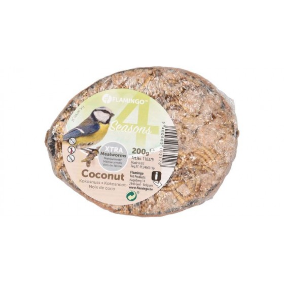 Rijkelijk gevuld met zaden en vetten. Verrijkt met extra meelwormen. Met ophangtouw om eenvoudig op te hangen.