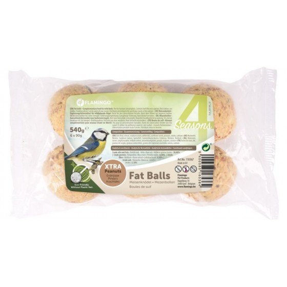 Zonder net: veiliger voor de vogels en milieuvriendelijker. Rijkelijk gevuld met zaden en vetten.