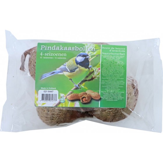 Help de vogels alle seizoenen door. 4 heerlijke pindakaasbollen van 90 gram om de buitenvogels bij te voeren. Inhoud: 360 gram.