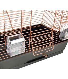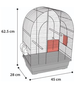 Luna 1 is een mooie vogelkooi. het word geleverd met 2 voederbakjes, 1 drinkbakje en 3 stokken. de afmetingen zijn 40x23,5x38,5 cm