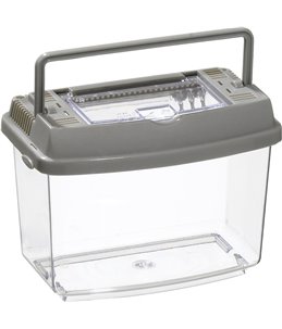Plastic aquarium met plastic afdekkap waardoor de vissen er niet uit kunnen springen met een handig voederklepje in de...