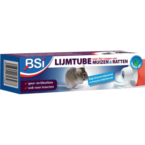 Muizen en ratten vangen zonder gif? Doe het met de BSI lijmtube. Knijp de lijm uit op een stukje karton, leg er een stukje kaas...