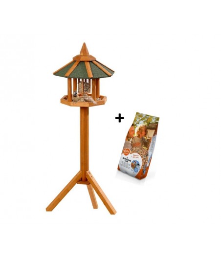 Dit grote, zeshoekige vogelvoederhuis zal vele vogelsoorten naar uw tuin lokken. Met luifel, voersilo en grote voerplaat. Het voedsel is goed beschermd tegen regen en sneeuw en makkelijk bij te vullen. Het voederhuis is vervaardigd uit massief hout en dus weerbestendig. De speciale dakbedekking bied een ideale landingsplaats voor de dieren. Eenvoudig te monteren.