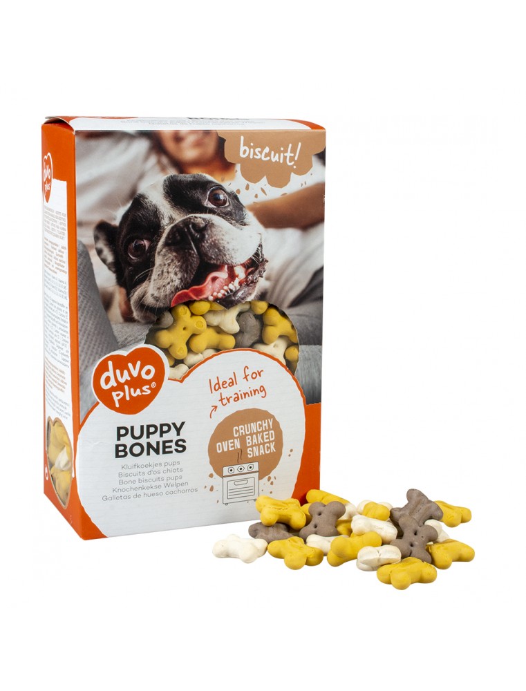 duvoplus ovengebakken hondenkoekjes maken honden en hun baasjes blij. Deze krokante mini-kluifjes hebben een lekker vanille-aroma en zijn perfect geschikt om pups mee te trainen. Niet te veel snoepen! :-)