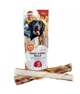 De heerlijke duvoplus chew! snacks maken honden en hun baasjes blij. Deze snack combineert runderhuid met een een smakelijke vleesstick die zorgvuldig door elkaar zijn gedraaid. Bovendien zonder toegevoegde suikers en met een laag vetgehalte. Dankzij de hardere runderhuid geniet uw hond van lang chew-plezier! Heel geschikt als extraatje voor elke hond. Chews wisely... maar niet te veel snoepen! :-) Snacks dienen als aanvulling en variatie op het dagelijkse menu van jouw hond.