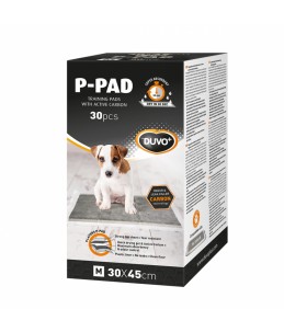Deze hoog absorberende Duvo+ plasdoek kan niet alleen gebruikt worden voor de zindelijkheidstraining van pups, maar kan ook perfect dienen als toilet voor incontinente honden of honden die lang opgesloten zitten. Helpt om jouw puppy zindelijk te maken: leg de pad op een vaste toegankelijke plaats. Plaats de puppy er op na eten en/of drinken en beloon hem als hij zijn behoefte op de P-Pad heeft gedaan. Om de puppy aan temoedigen hierop zijn behoefte te doen, kan je ook de P-Pad spray gebruiken. Als de puppy de P-Pad correct gebruikt, verschuift je de P-Pad richting deur tot hij buiten ligt en buiten zijn behoefte doet. Ook geschikt voor in reismanden of kennels. De P-Pads bestaan uit 5 lagen die jouw vloer en de pootjes droog en proper houden. De bovenste laag is gemaakt van Carbon Technology, dit biedt een maximale absorptie aan, 2x meer dan normale training pads en verwijdert snel onaangename geuren. De middelste laag zet vloeistof snel om in gel en zorgt voor droge pootjes. De onderste en bovenste laag is z, Afmeting: 45x60x0,1