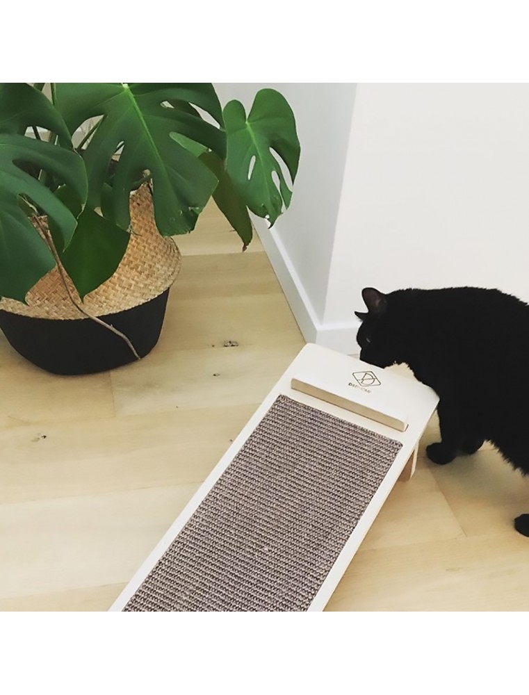 Krabplank Kenny voorziet de kat van alle oerbehoeftes die het heeft. De ene kant van de plank is bekleed met sisal voor het aanscherpen van de nagels. De andere kant van de plank is bekleed met vilt om verschillende geuren op af te geven. Door het afwisselen van de verschillende zijden, ontstaat er optimaal speel- en krabplezier. De plank is eenvoudig te monteren, er komt geen schroef of lijm aan te pas. Een bijkomend voordeel van dit object is dat het zich gemakkelijk laat opbergen. Krabplank Kenny is een ware aanwist voor het interieur en voor de kat!