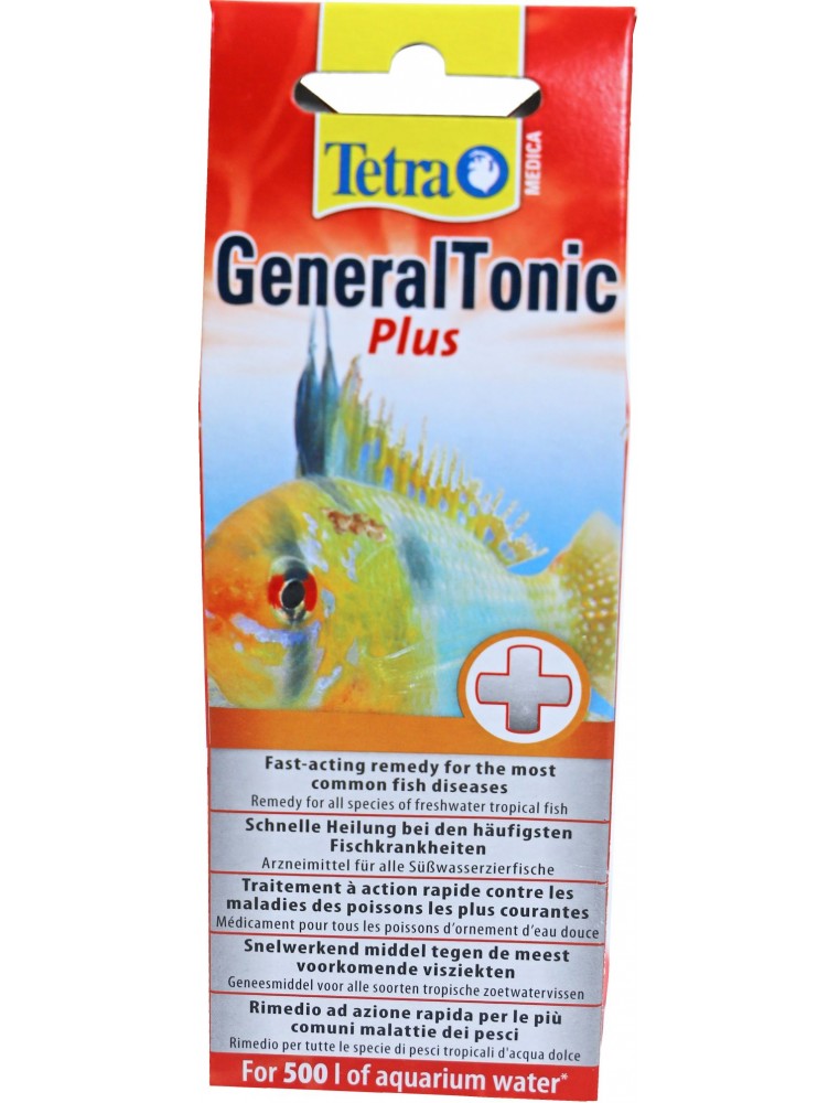 Tetra Medica General Tonic plus is een snelwerkend middel tegen de meest voorkomende visziekten. Geneesmiddel voor alle soorten tropische zoetwater siervissen. Helpt bijvoorbeeld bij bacteriële infecties en ectoparasitaire ziekten zoals: Costia of zoetwater-Oodinium en wonden.