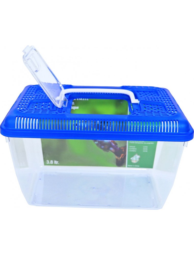 Gebr. de Boon BV plastic aquarium met een blauwe plastic afdekkap waardoor de vissen er niet uit kunnen springen met een handig transparant voederklepje in de afdekkap. Verkrijgbaar in meerdere maten.