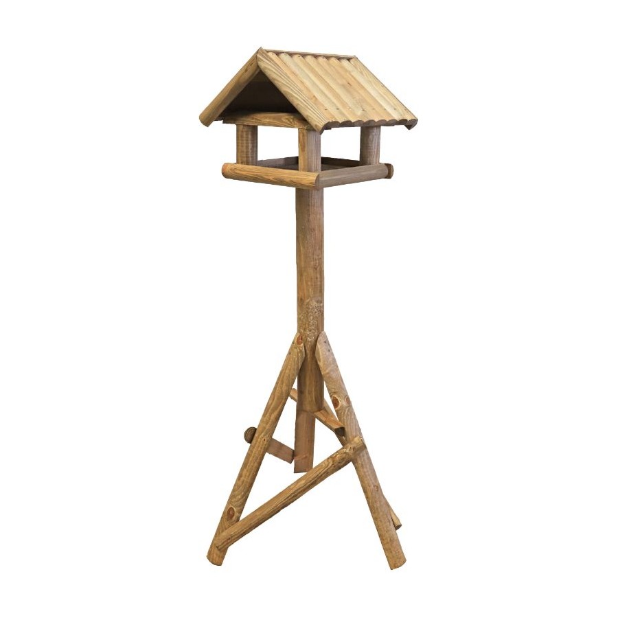 Voederhuis bruin huismodel met ribdak op poot is een gezellig en duurzaam voederhuis voor vele soorten buitenvogels. Het voederhuis is makkelijk te verplaatsen en is gemaakt van vurenhout en is afgewerkt met een houten ribdak. Het hout is geïmpregneerd in een bad, waardoor dit huisje het gehele jaar gebruikt kan worden. Zo zullen diverse soorten buitenvogels uw tuin bezoeken, die u op hun beurt laten genieten van hun aanwezigheid en bedrijvigheid. - Afmeting : 125,0 x 48,0 x 48,0 cm - Gewicht : 6,3kg