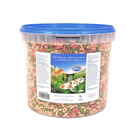 De Duvo+ Colour Sticks is een volledige voeding voor alle sier- en vijvervissen. Deze drijvende sticks zijn perfect afgestemd op de voedingsbehoeften van sier- en vijvervissen. De sticks zijn ongeveer 4mm groot en zeer geschikt voor vissen groter dan 5cm.