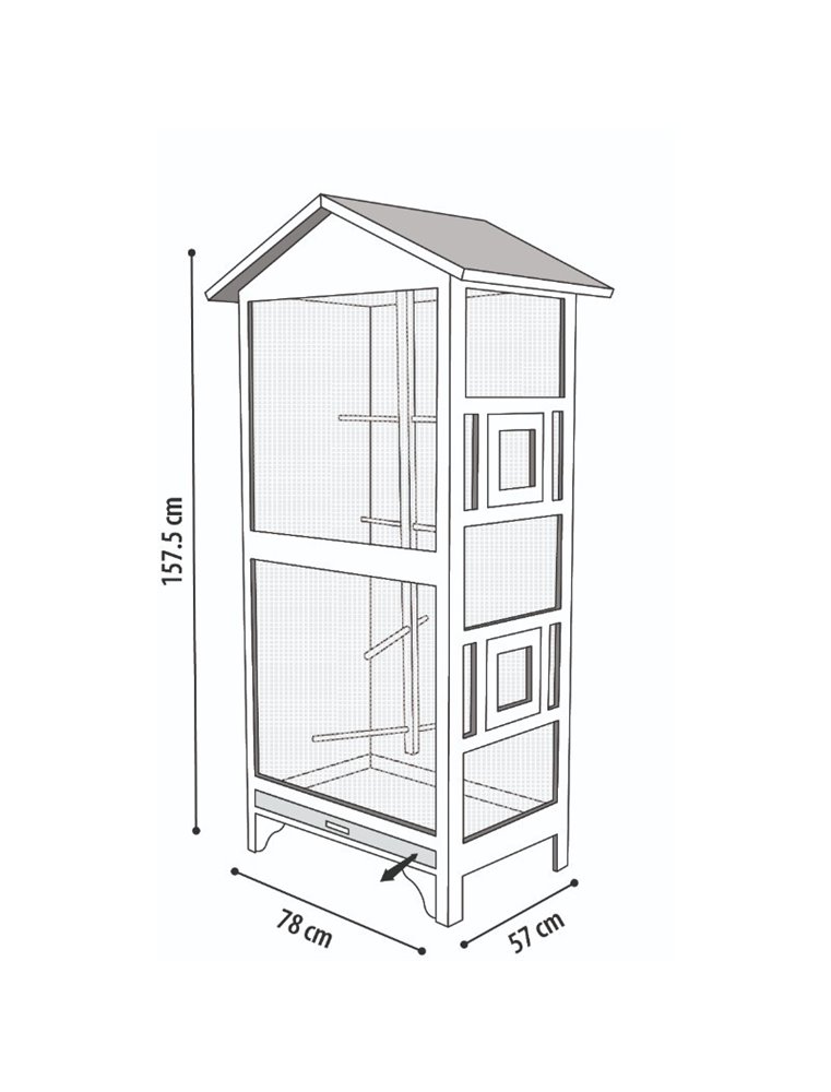 Op zoek naar een mooi verblijf voor uw vogels? De vogel voliere Nevada Cottage is een mooie voliere voor meerdere vogels. Dit staande model van Flamingo heeft een afmeting van 78 x 57 x 157,5 cm en heeft een weersbestendige afwerking. De voliere kan zowel buiten als binnen gebruikt worden, let bij het plaatsen buiten wel op (slag)regen in de voliere. Plaats deze bij voorkeur beschut, ook voor uw vogels is dit beter. De temperatuur kan in de zomermaanden enorm oplopen, houd hier rekening mee bij het plaatsen van uw voliere.